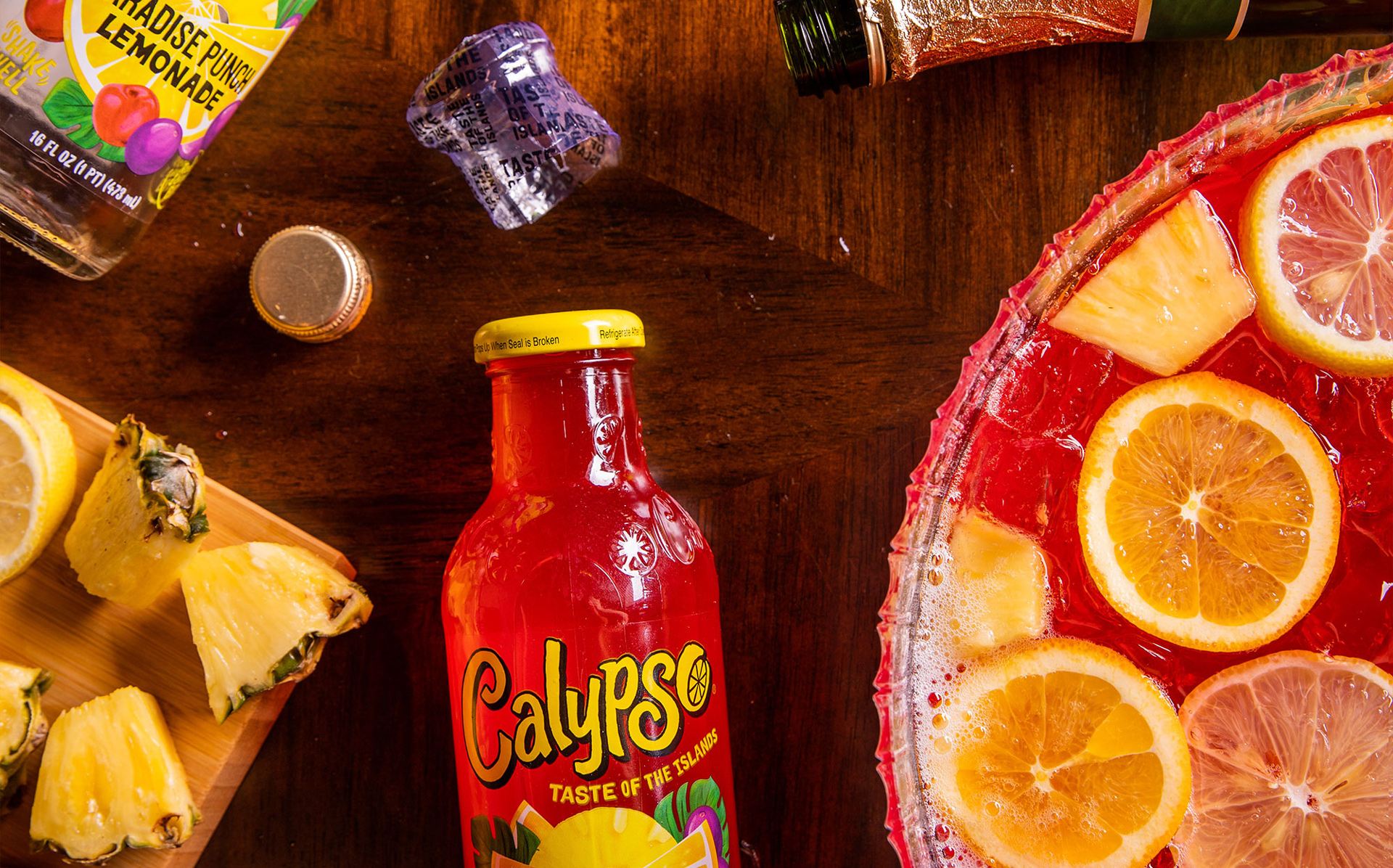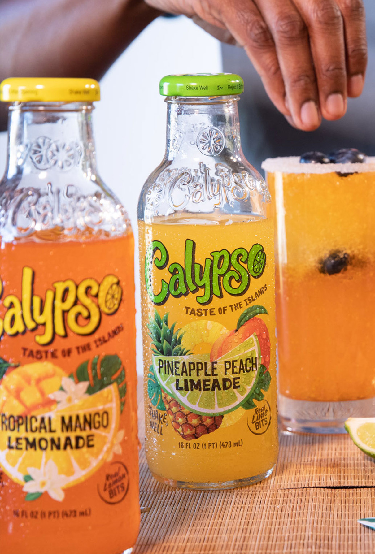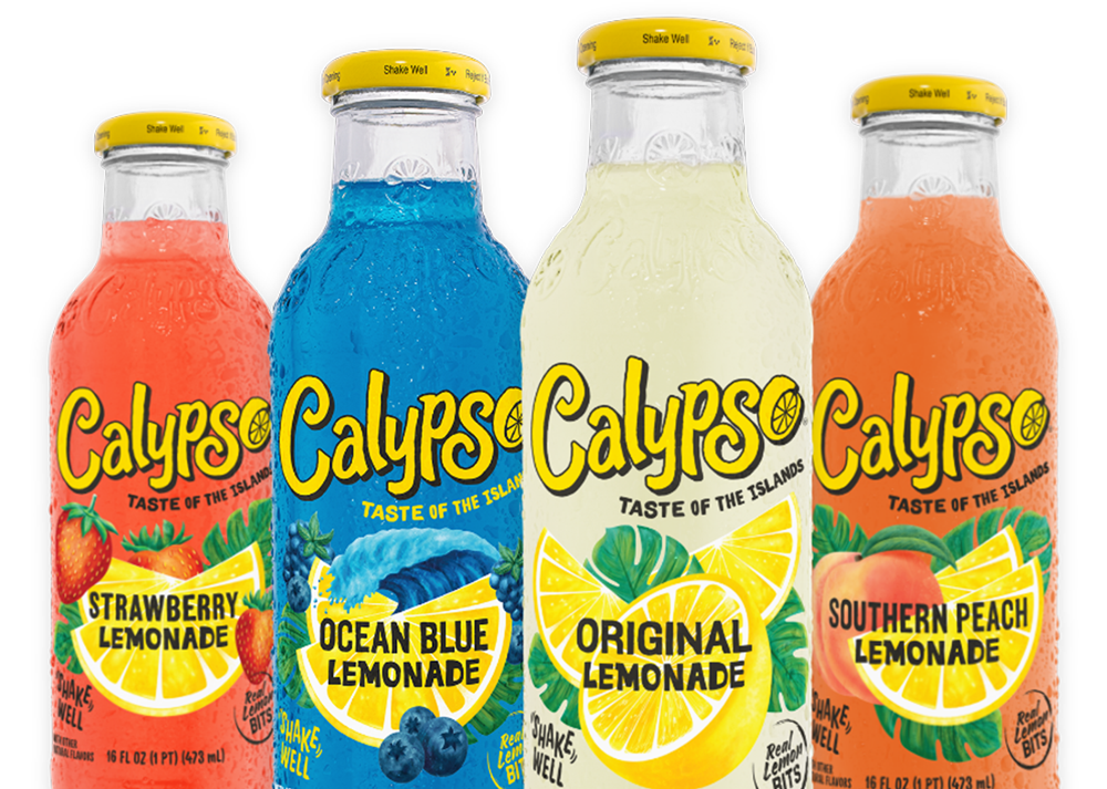 Calypso, the originator of the flavored lemonade category, has evolved from four lemonade blends into a dozen lemonade and limeade combinations. Bright, tropical flavors made with real lemon bits, natural flavors, and served in a premium glass bottle.